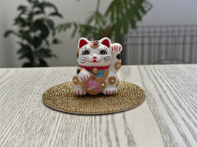 ― 2026年を迎えるための、象徴として ― 今年も残すところわずかとなりました。 大阪万博を終え、テクノロジーや効率、最先端が加速する時代を、私たちは生きています。 そのような時代だからこそ、 2026年が「競う年」ではなく「尊重し合う年」であってほしい。 その願いを込めて、一般社団法人日本視覚障がい者美容協会(JBB)より、世界にひとつだけのフォーチュンキャットをお譲りいたします。 【制作背景】 このフォーチュンキャットは、 イギリスの最先端テクノロジーによる3Dプリンターで制作された、無機質で透明な造形から始まりました。 量産が可能で、均質で、合理的。 それはまさに現代を象徴する、美しいテクノロジーの結晶です。 一方で私は、その造形に「もう一つの可能性」を感じました。 それは、人の手によってしか宿らないもの――個性、温度、そして命です。 私はあえて、 100円均一のアクリル絵の具とネイルアートの素材という、最も身近でアナログな材料を使い、 一点一点、完全に手作業で絵付けを施しました。 手書きは、二度と同じものを作れません。 効率も、量産性もありません。 けれどそこには、「人が人のために手を動かした証」が確かに残ります。 【この作品が象徴するもの】 このフォーチュンキャットは、 最先端テクノロジーと、忘れられつつある手書きの技術が共存する象徴です。 どちらが優れているかではなく、 どちらも尊重される社会であってほしい。 異なる価値観、異なる立場、異なる能力。 それらが排除されるのではなく、並び立つ未来への願いを、この一点に命を込めました。 【ご購入について】 本作品は、 ・唯一無二の手仕事の価値を大切にしたい方 ・テクノロジーと人間性の共存に共感してくださる方 ・JBBの活動を応援してくださる方 にお譲りしたいと考えております。 なお、お代はすべてJBBの活動費として大切に使わせていただきます。 千客万来、商売繁盛のご利益があるかどうかは分かりません。 けれど、価値観を飾る福として、きっと意味のある存在になるはずです。 【商品の特徴】 三毛猫 挙げている手:左手 背丈:5.5センチほど 頭上の小判の上には錦鯉、手に持った小判の上には鯛が立体アートで施されています。 三つの丸いコインの真ん中には、スワロフスキーのジョンキル(黄水仙) 手に持った小判の上には、スワロフスキーの赤いハートのストーン 手に持った小判の右横のコインの真ん中には、スワロフスキーのクリアでひし形のストーン 左足の側面の小判には”魚”の漢字一文字 背中にはメダルを掛け、お尻には、左側に富士山と右側に桜が描かれています。 台座もお付けいたします。 ノークレームノーリターンにてお願いいたします。