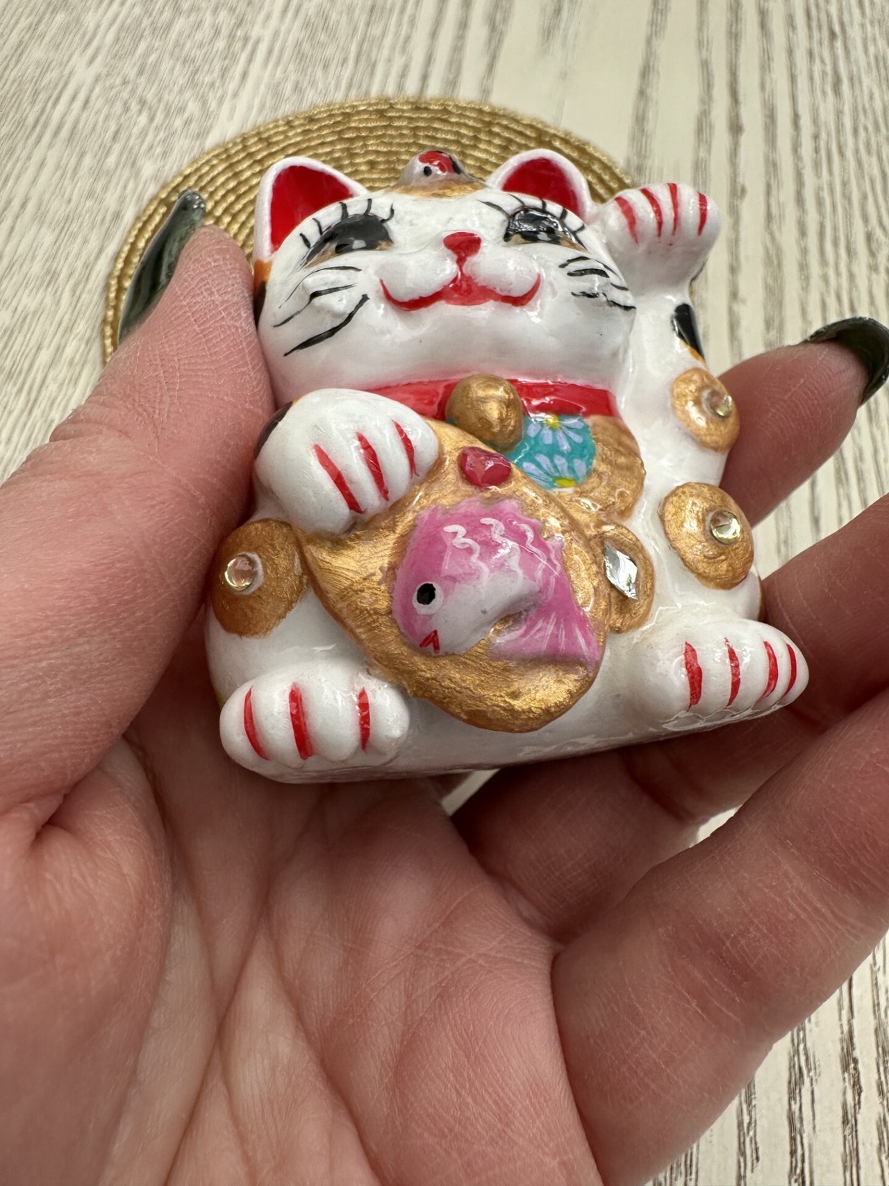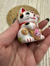 手に持った小判の右横のコインの真ん中には、スワロフスキーのクリアでひし形のストーン